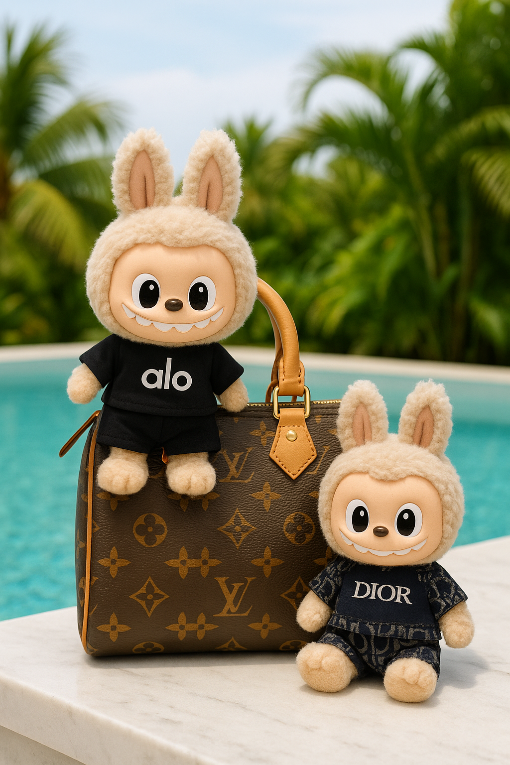 Labubu Louis Vuitton-Inspired 2pc Monogram Set – Bucket Hat & Overalls for Labubu
